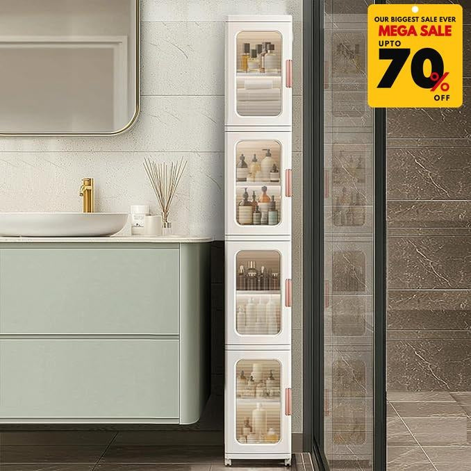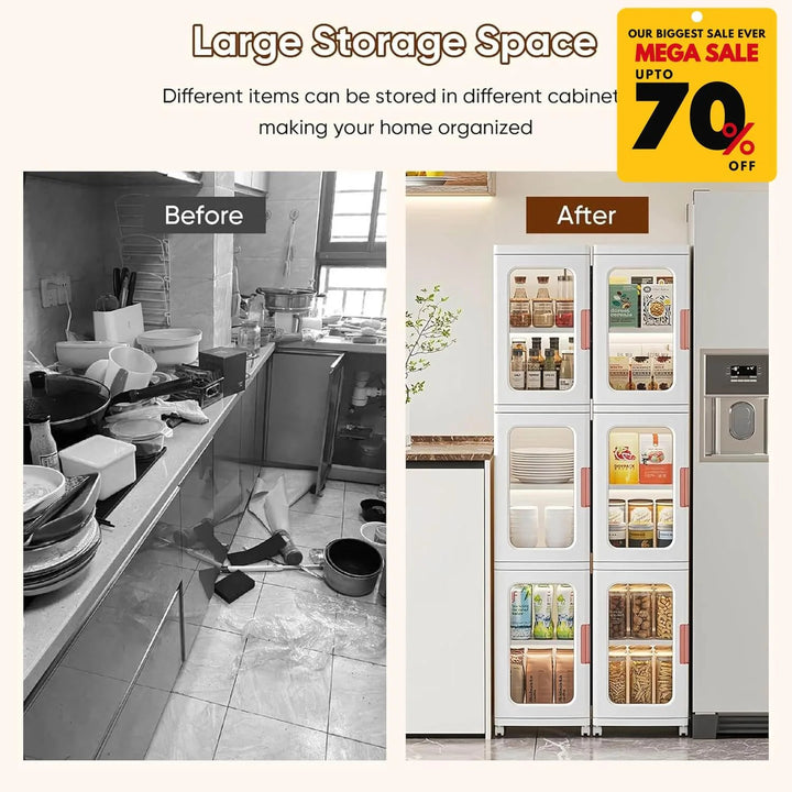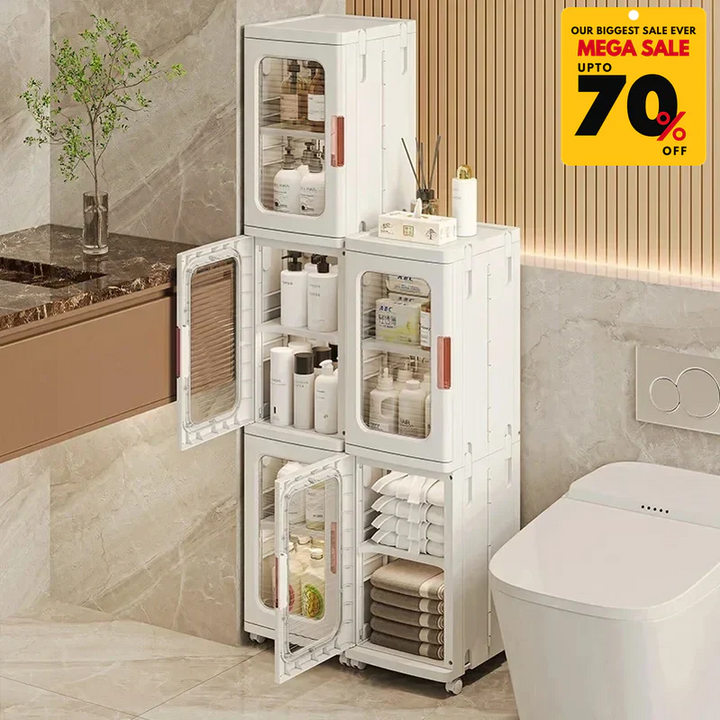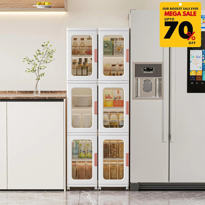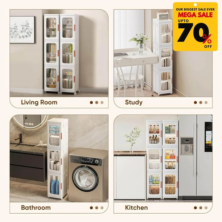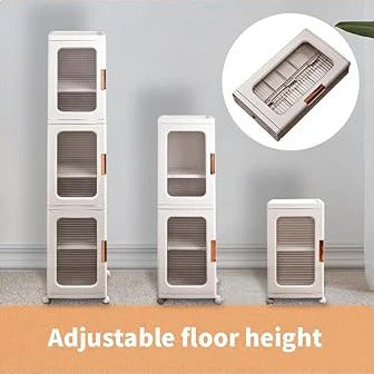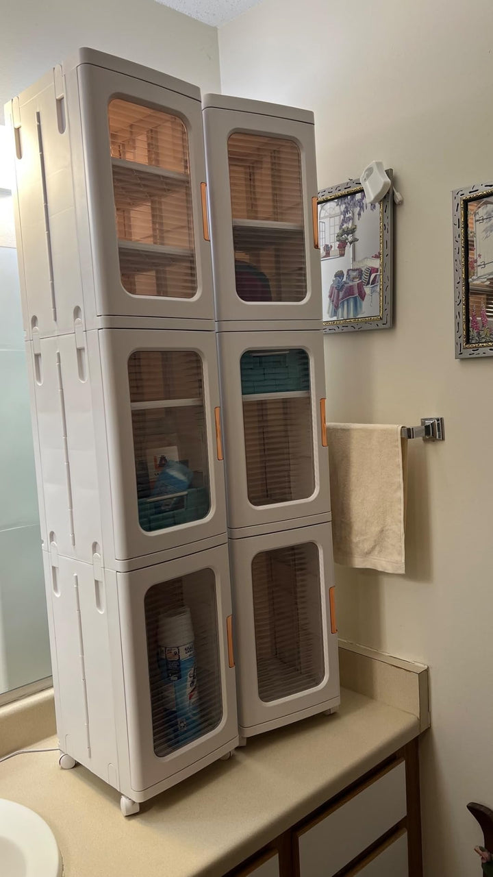 Featuring spacious compartments, transparent doors, and a modular stackable design, it’s perfect for clothing, accessories, or household items.