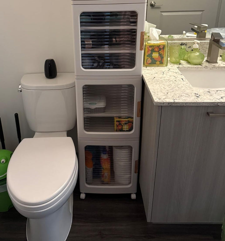 Keep your space stylish and clutter-free with the Acrylic 3-Tier Storage Cabinet with Wheels!