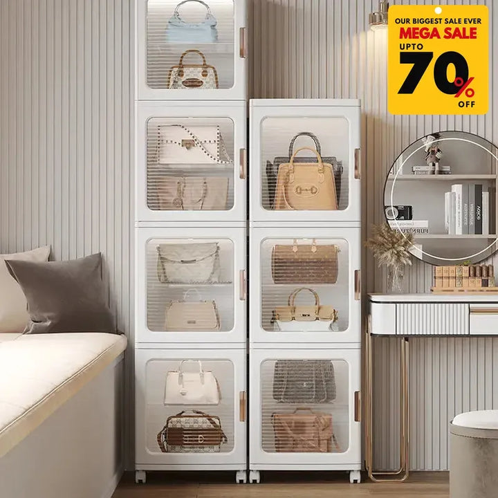 Designed for versatile organization, it’s perfect for storing handbags, kitchen essentials, or household items.