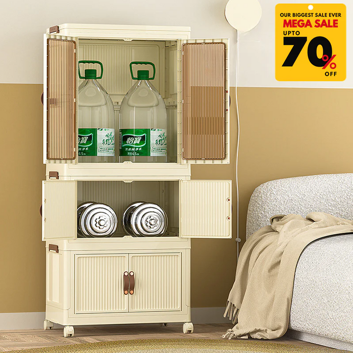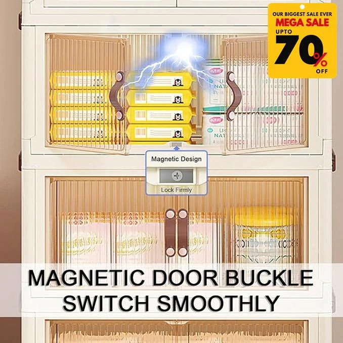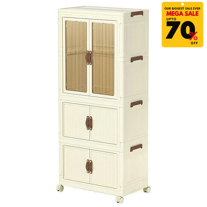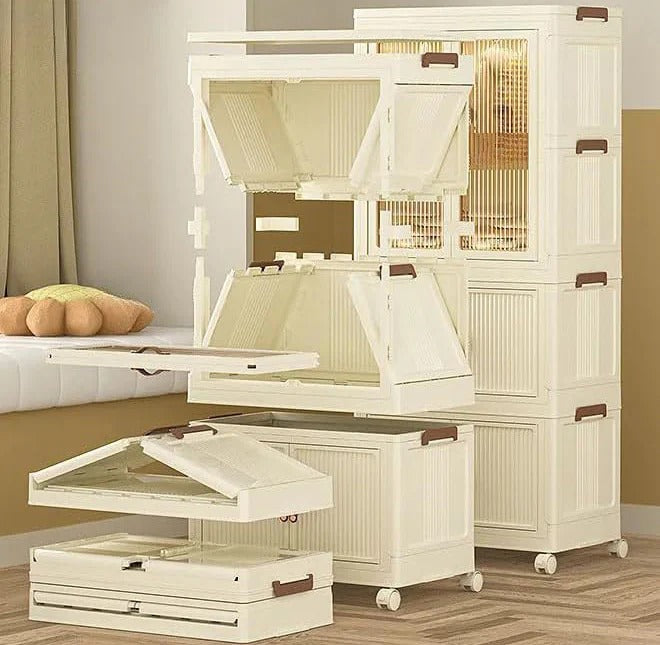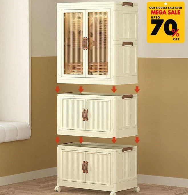 Featuring spacious compartments, transparent doors, and a modular stackable design, it’s perfect for clothing, accessories, or household items.