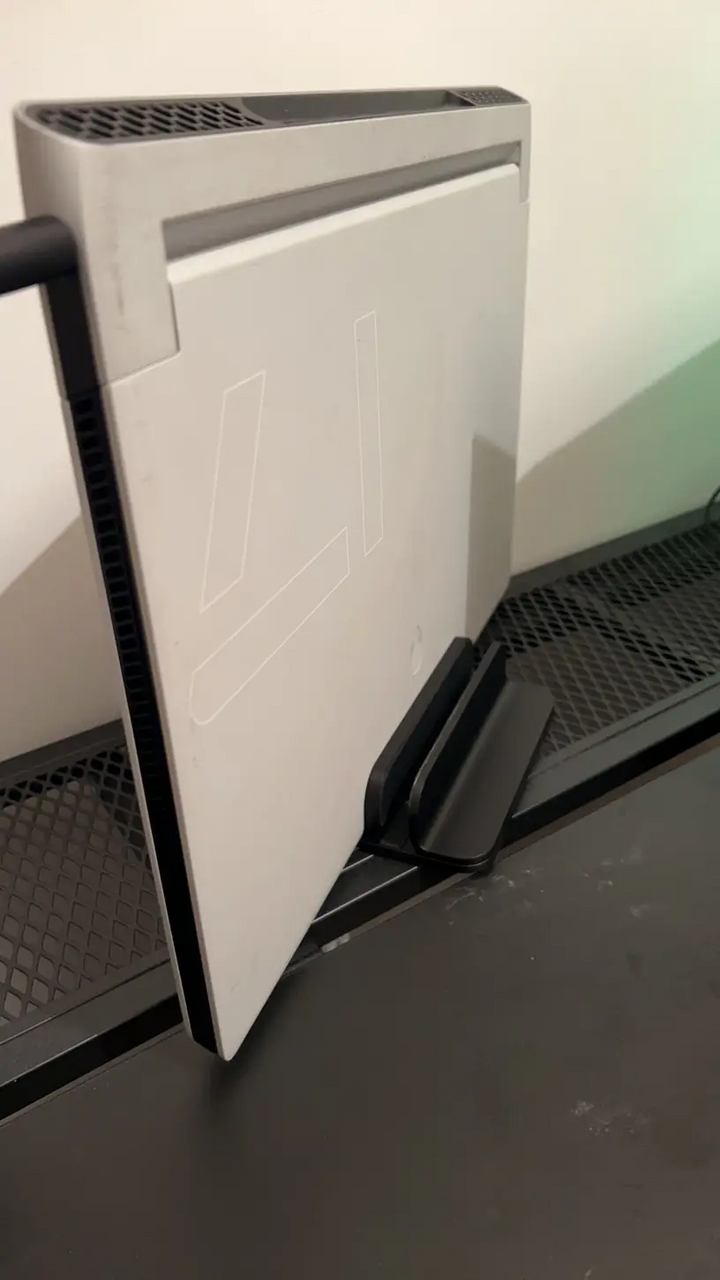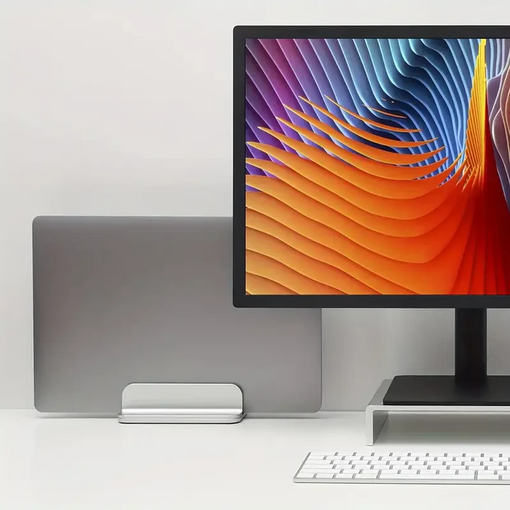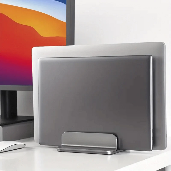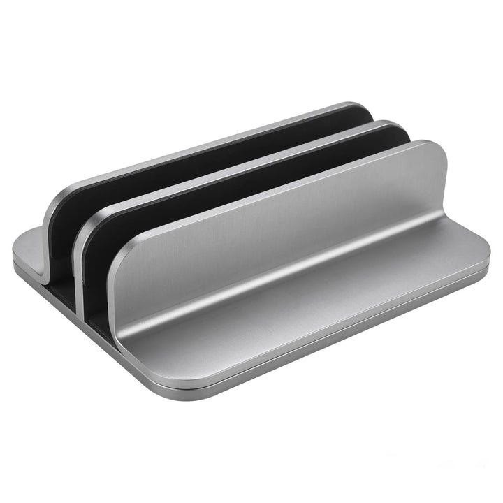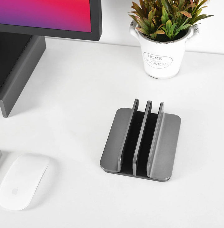 Organize your workspace with the Adjustable DualSlot Laptop Holder. Designed to securely hold two laptops or tablets, this sleek holder optimizes desk space while keeping your devices within easy reach. Its adjustable slots ensure a snug fit for various device sizes, blending style with functionality.