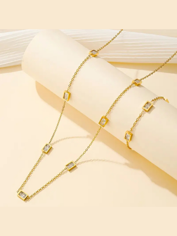 Stainless Steel Square Stone Chain Necklace and Bracelet Set